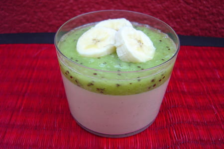 Verser un peu de coulis de kiwi sur vos crèmes et décorer de rondelles de bananes.